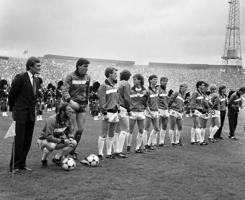 Tom McAdam lines for Celtic ahead of kick-off in the 1985 Scottish Cup Final