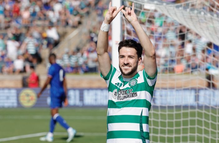 Celtic’s Mikey Johnston celebrates his goal during a pre-season match between Chelsea and Celtic at Notre Dame Stadium in South Bend, Indiana, on July 27, 2024. Photo by KAMIL KRZACZYNSKI/AFP via Getty Image