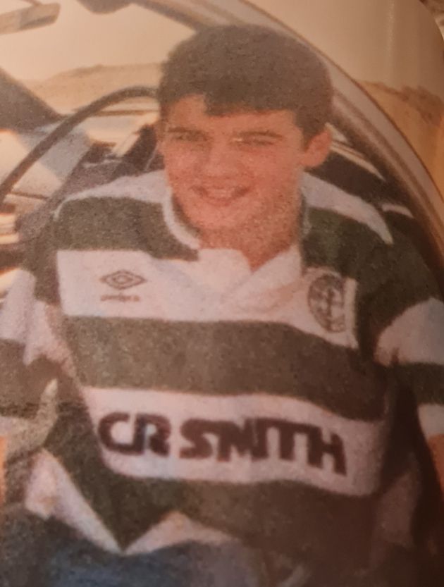A teenage Robert Galbraith wearing his Centenary Celtic shirt