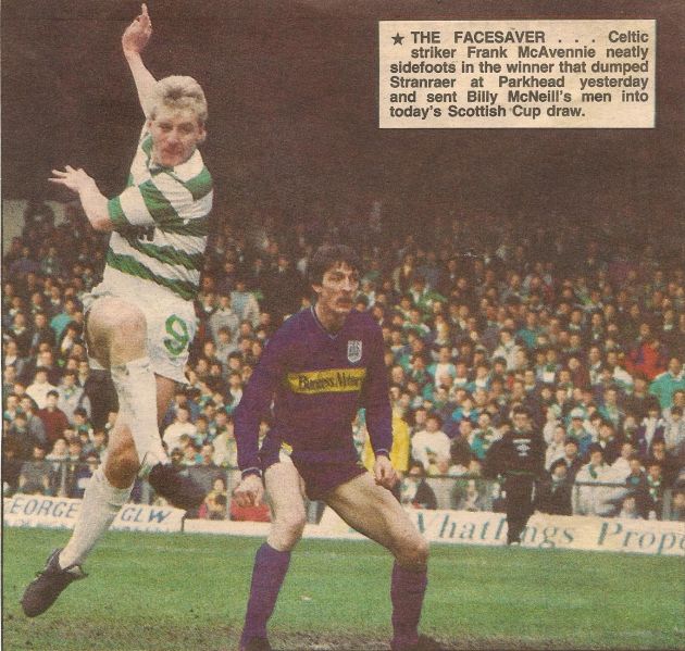 Celtic’s journey to the final was not quite as straightforward as I would have liked, the Hoops struggling to overcome Second Division strugglers Stranraer in the Third Round in a 1-0 home victory on Saturday, 30 January 1988, thanks to Frank McAvennie’s early goal.