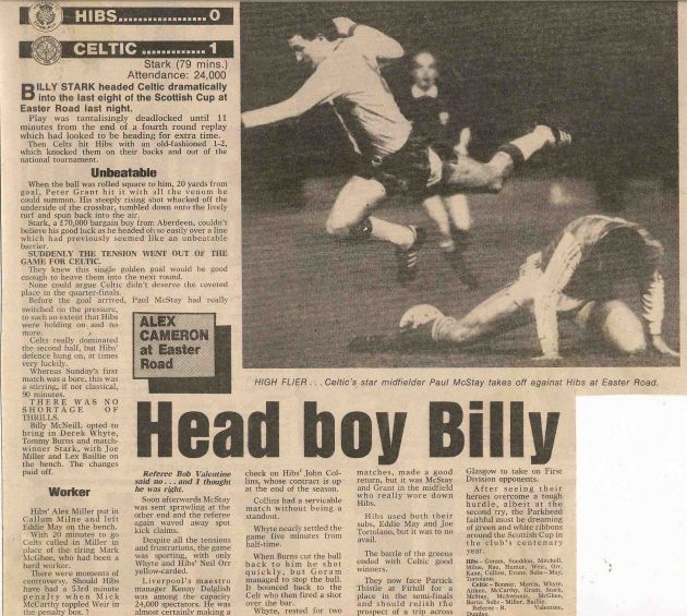 It was a similar kind of evening again, in front of an all-ticket 24,000 crowd, but without the overcrowding and the crowd trouble this time. Billy Stark’s late winner sending Celtic into the quarter-final against Partick Thistle at Firhill, scheduled for Saturday, 12 March 1988.