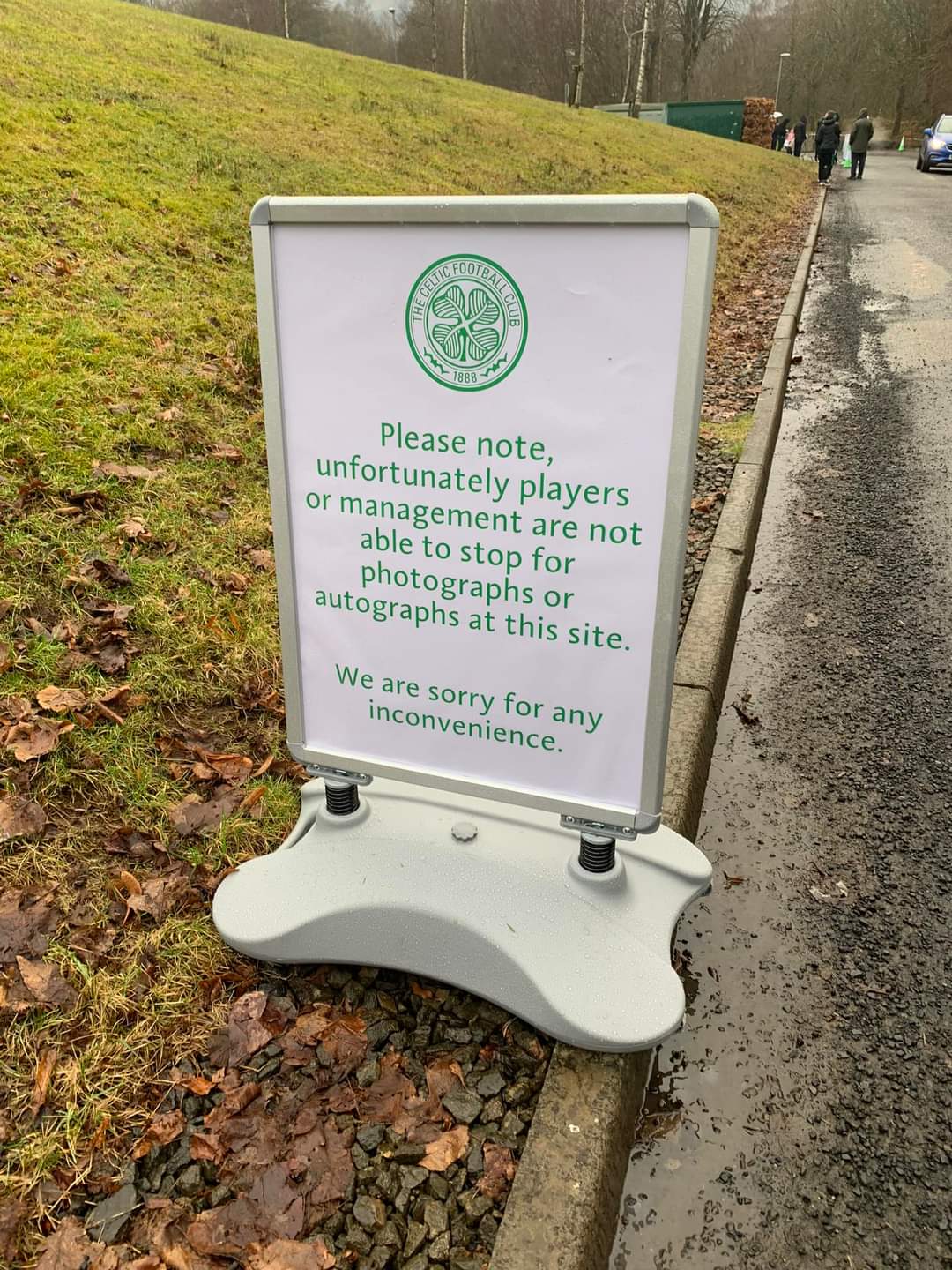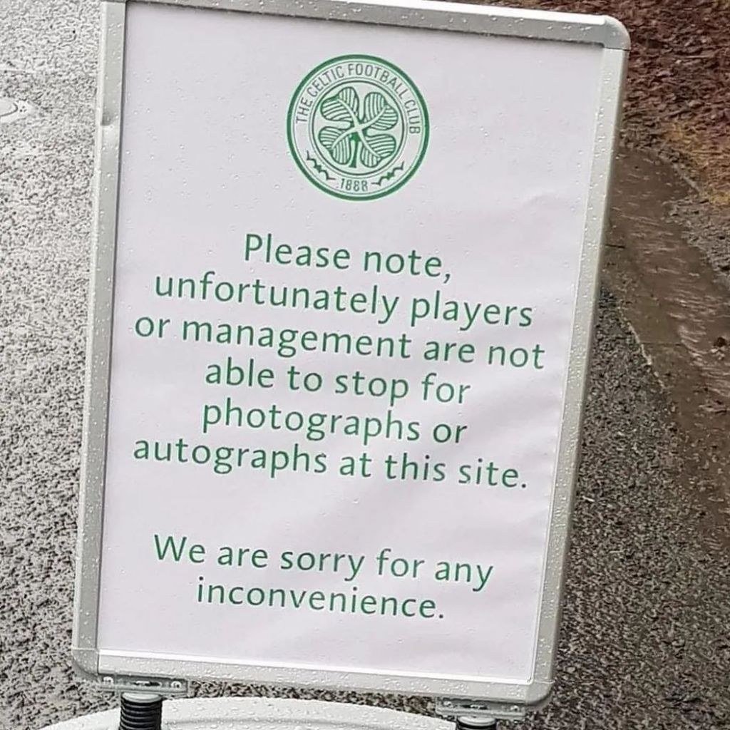 Is that perhaps why Celtic have popped up a sign advising those who hang around outside the Lennoxtown training ground that their wait to meet their heroes will be in vain? The sign states: