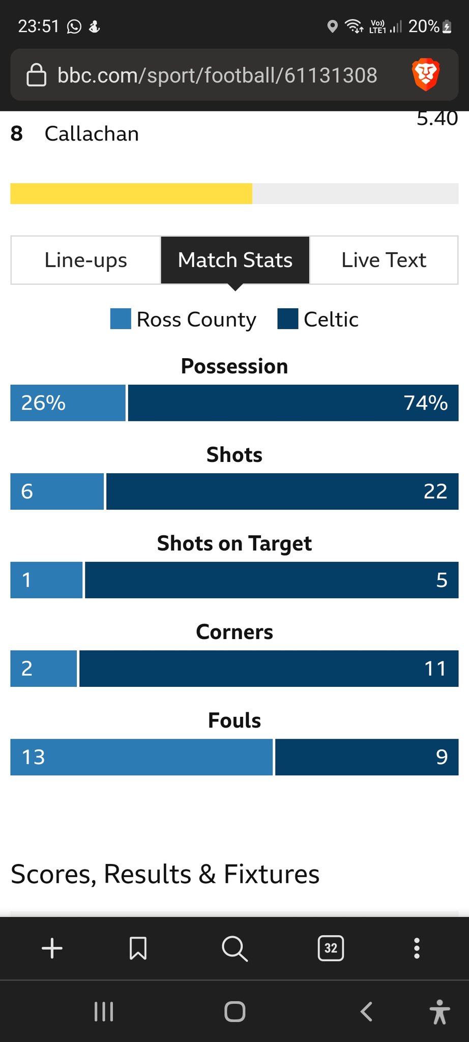Tony Hayes hit back at BBC Scotland by showing them the stats they they published on their own website from yesterday’s 2-0 win for Celtic against Ross County…