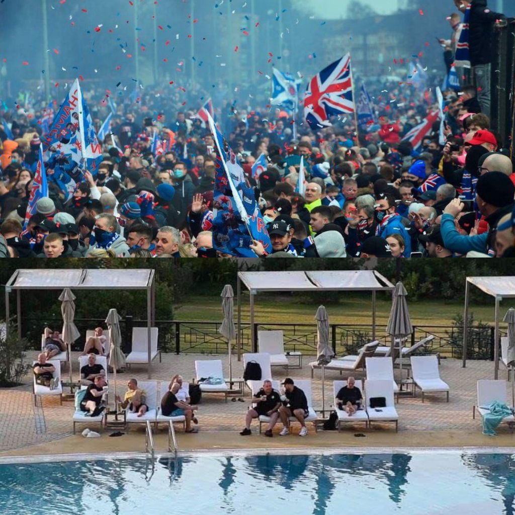 And if around 20 Celtic players needs 5 Parks of Hamilton buses to get them to places like Dingwall and Dundee then how come 5 Rangers players can jump in the same car and drive around celebrating with their fans? Steven Gerrard too seemed to be breaching these guidelines too.
