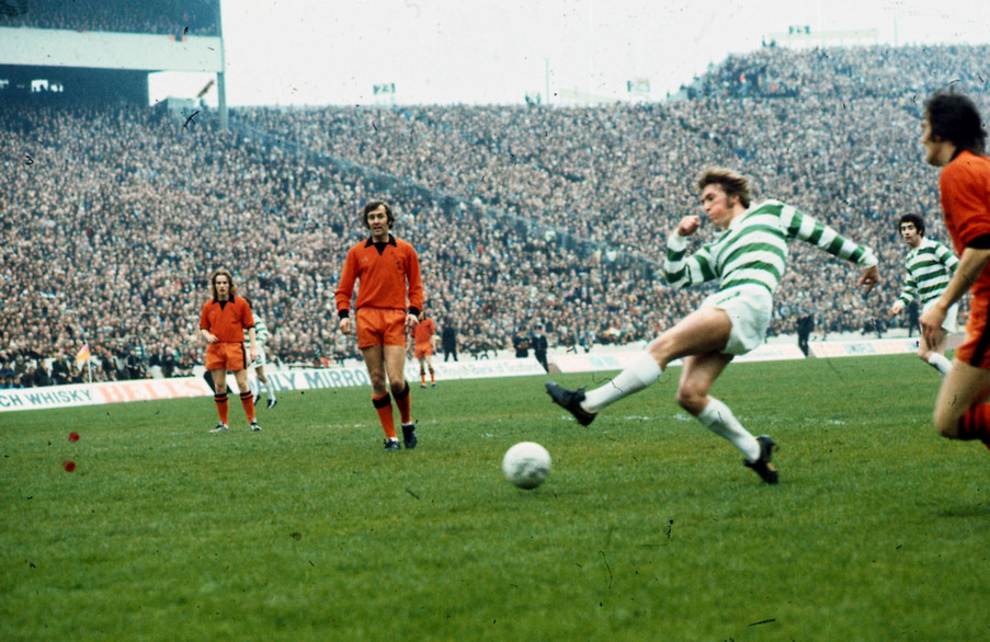 It was against Dundee Utd who were not yet the threat they would become a few years later. Only 76,000 were at the game. My first experience of a Celtic Cup final crowd of under 100,000. Celtic were 2 up after the first 24 minutes and the game was never in doubt. Boredom set in on the terracing and after some bottles were thrown near us the police came in to arrest the first couple they could grab without worrying too much about their likely guilt.