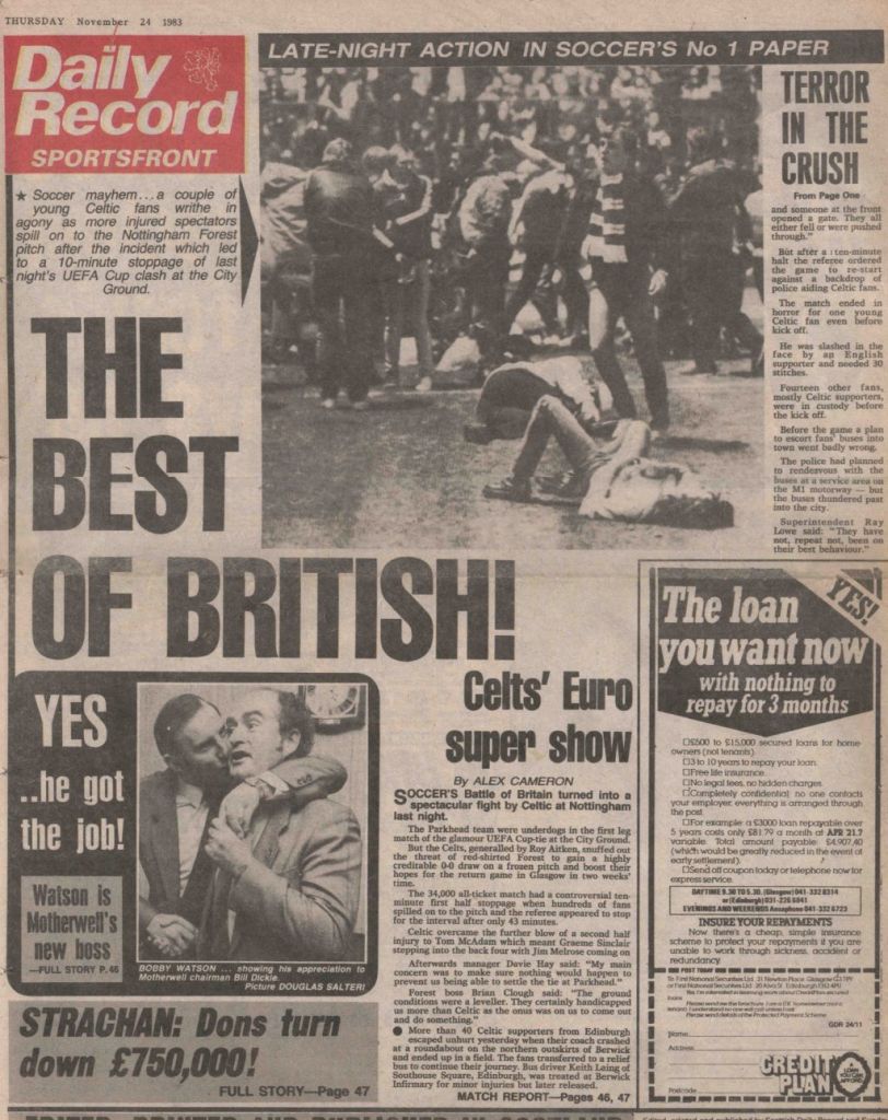 More Celtic supporters submitted their stories from the Nottingham Forest v Celtic UEFA Cup match at The City Ground on a freezing cold November evening back in 1983. The game ended goalless, frustrating from a Celtic point of view as we were head and shoulders the better team on the night and we would regret the lost opportunity in the second leg at Celtic Park a few weeks later.