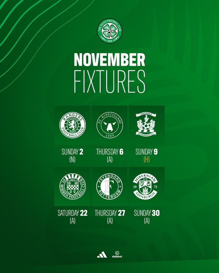 Celtic’s month ends with a trip through to Edinburgh on Sunday 30 November to take on Hibs at Easter Road. Hopefully by the time that game has ended Celtic will have closed the gap even further on current leaders Hearts who come to Celtic Park early in December.