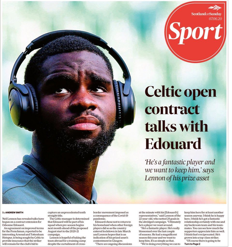 NEIL LENNON, who was last night confirmed as the Sports Writers’ Manager of the Year, has revealed that Celtic have opened contract extension talks with French striker Odsonne Edouard. This news is hugely encouraging and if it leads to a new contract deal being put in place will mean that the talisman will be here for Ten-in-a-Row at the very least!