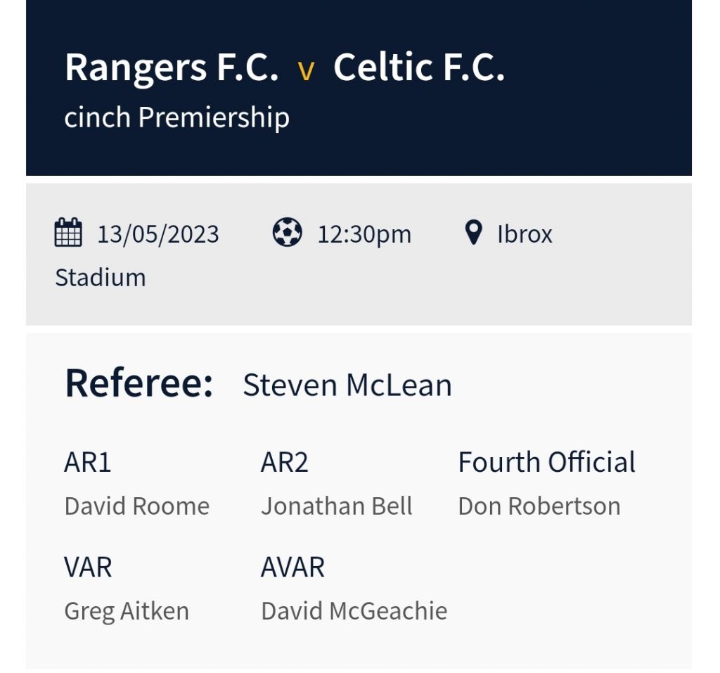 Steven McLean will referee Saturday’s Dead Rubber Glasgow Derby at Ibrox as James Tavernier gets set to provide a Guard of Honour for the newly Crowned Scottish Champions who secured an Eleventh Title Win in Twelve Seasons at the weekend with a 2-0 win against Hearts at Tynecastle.