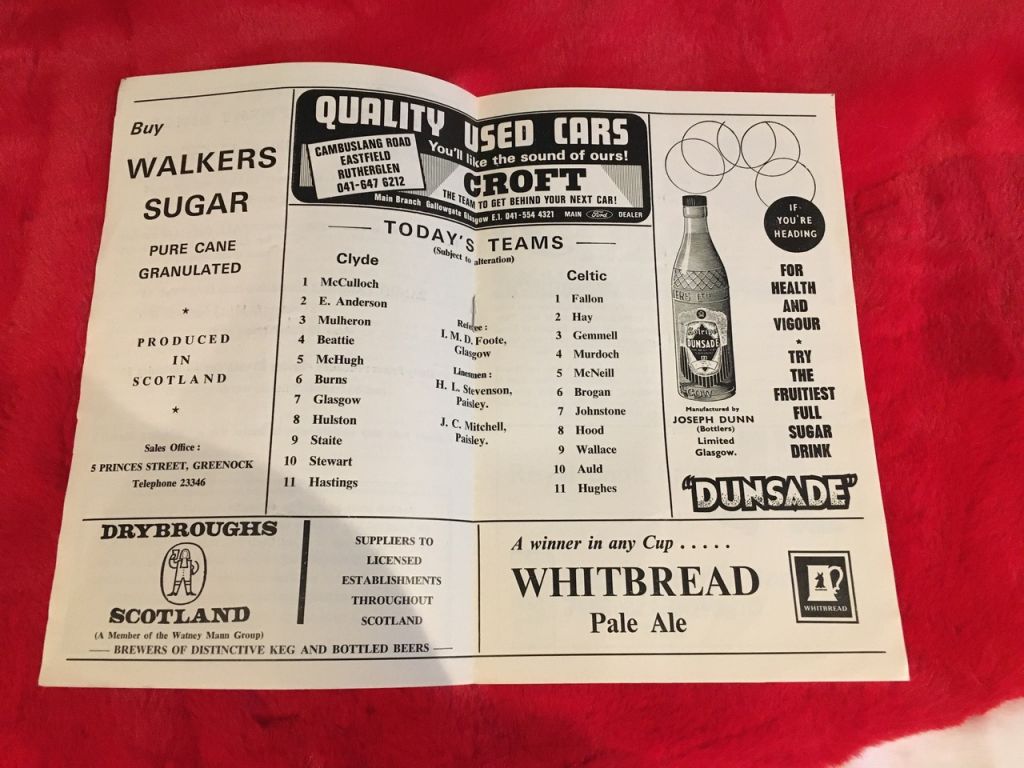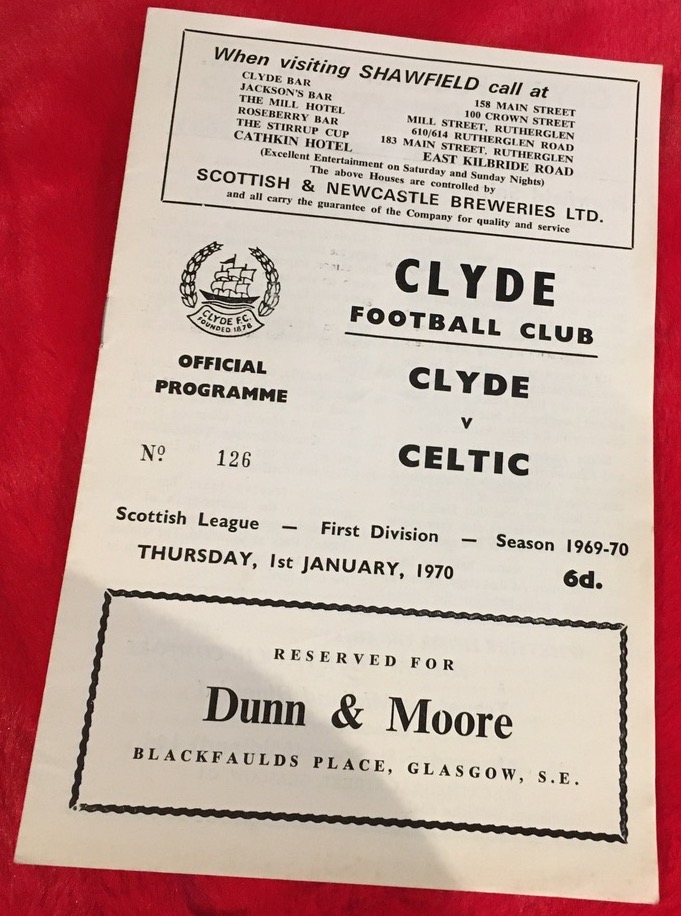 I marked the first changing of a decade in my lifetime with a trip to Shawfield in my dad’s car to see Celtic take on Clyde, the supporters’ bus not running on Thursday, 1 January 1970. It was weird to see a date on the programme which was not from the 1960’s. Funny the things which stick in your mind. Harry Hood would return to his first senior ground and Celtic would return with the two points after a hard-fought 2-0 win, the former Clyde striker instrumental in setting up the first goal of the ‘70s for John Hughes before young Lou Macari sealed victory right at the death.