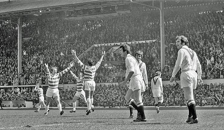 By the seventh minute, it was 1-1, Colin Stein the last link in the head tennis chain as he beat Peter Latchford from Tommy McLean’s corner kick, however the best goal of the game arrived 10 minutes later. Kenny Dalglish advanced to the edge of the Rangers box before slipping a pass to Paul Wilson on his right, the talented Celt leaving Colin Jackson sprawling on the sodden turf with a shake of his hips, before rounding Kennedy and slamming the ball between John Greig and Tom Forsyth into the Hampden net for a quite stunning goal. A strike fit to grace any occasion, completing Wilson’s second cup final double in seven days and taking his tally at the national stadium to six in four games in this, the best season of his career.