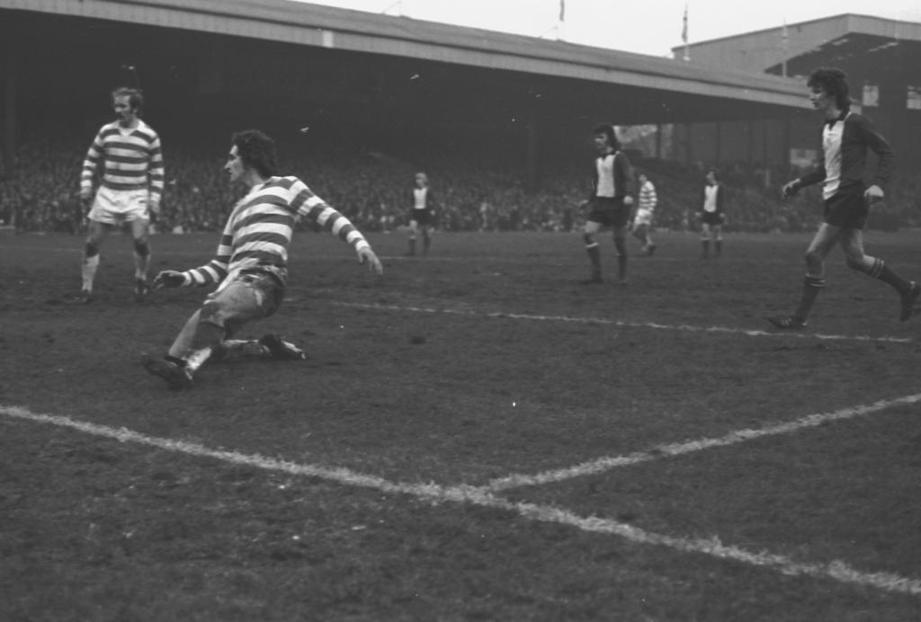 The 10 men would concede a goal within three minutes of that red card, Kenny Dalglish curling a delightful free-kick beyond Derek Robertson in the Saints goal. Celtic’s third, with five minutes to play, was less pleasing on the eye, Steve Murray’s header from a Harry Hood cross creeping between goalkeeper and defenders to give Celts some welcome daylight at the summit.