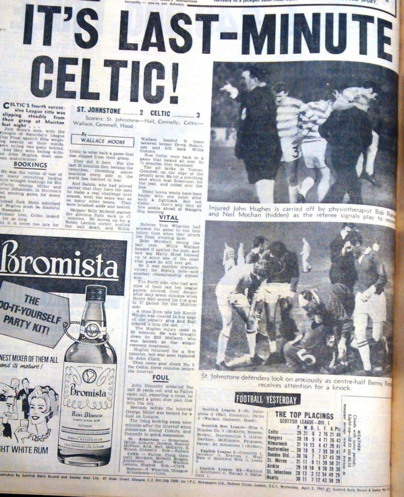 They would then show the spirit for which they were renowned, first Willie Wallace then Tommy Gemmell finding the net to set up a frantic finish. With just seconds left on the clock, it would be the new Bhoy, Harry Hood, who would follow up to force home a dramatic winner.