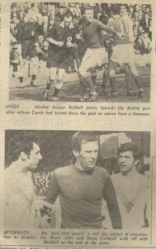 League business was resumed on Saturday, 19 April 1969, Celtic sharing four goals at home with Airdrieonians, with a Billy McNeill ‘winner’ controversially disallowed in the last minute, the Hoops skipper furiously remonstrating with referee Currie all the way to the tunnel. This was the first match Harry played for Celtic where he did not score, the champions now five points clear with three to play.