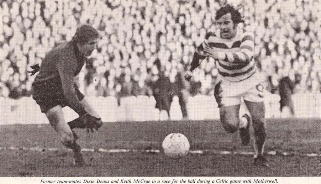 April opened with a Tuesday evening rescheduled match at home to Motherwell, second-half goals from the deadly duo of Kenny Dalglish and Dixie Deans securing the two points which brought Celtic level at the summit with Rangers but now 11 goals better off than the Ibrox side, both teams now with four games remaining.
