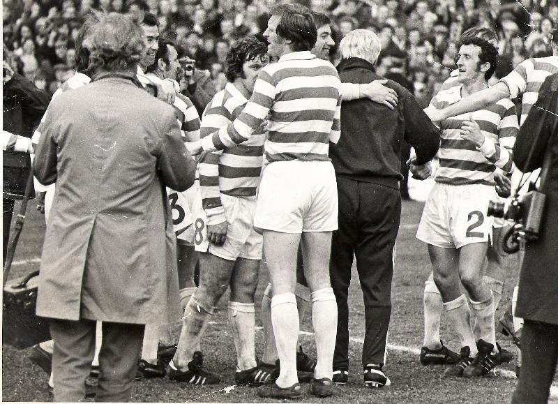 Now the party could really get underway, in Leith and Springburn, Deans putting the icing on the championship cake when he rose at the far post to head home Davie Hay’s superb cross. The little striker was, perhaps appropriately, wearing the number eight shorts on the day, his double securing the title just as Neil Mochan’s had done on the same ground back in 1954. At full-time, both men would embrace on the pitch as the players and management celebrated yet another unique achievement, in front of the massed ranks of the delirious Celtic support.