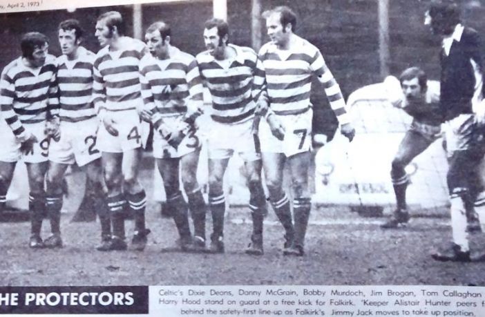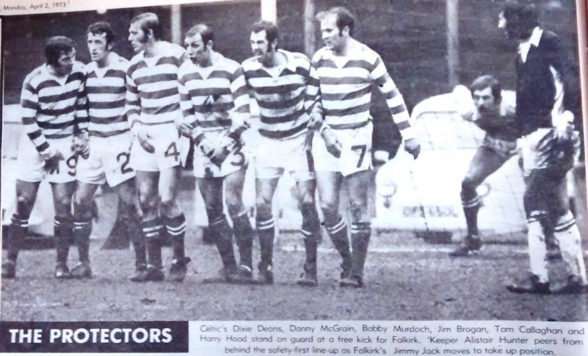 Controversial referee Bobby Davidson was back at Celtic Park on the last day of March, as the Hoops entertained Falkirk, however, even the Airdrie official was powerless to stop a Celtic side from romping to a 4-0 victory, with Harry Hood very much to the fore after the interval. Dixie Deans had once again opened the scoring with Bobby Lennox successfully converting his second penalty kick of the month.