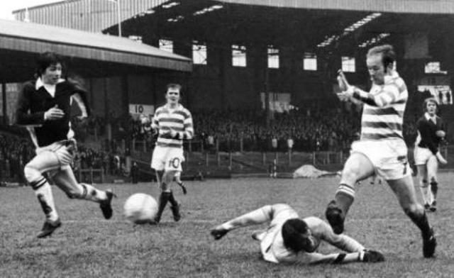 For once, though, this would result in a positive for Celts, Ally Hunter diving to his left to save in spectacular fashion from Peter Millar. This would prove the crucial moment in the tie. Dalglish and Dixie Deans had shared four goals in the defeat of East Fife at Celtic Park in the previous round, and they would combine brilliantly again, Kenny linking up with Danny McGrain to set his strike partner up for a five-minute double midway through the first half.
