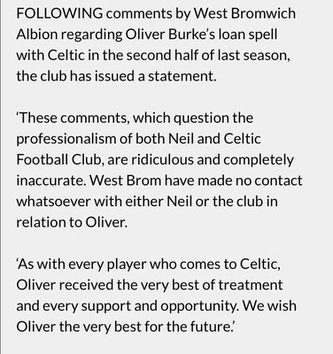 Burke returned to West Brom after falling out of favour with manager Neil Lennon, along it has to be said with the other loanees brought in last season by Brendan Rodgers. Lennon did give Burke a start at Ibrox in the last Glasgow Derby in May after the league title had been secured. But Burke had a shocker as the Rangers ran out comfortable 2-0 winners.