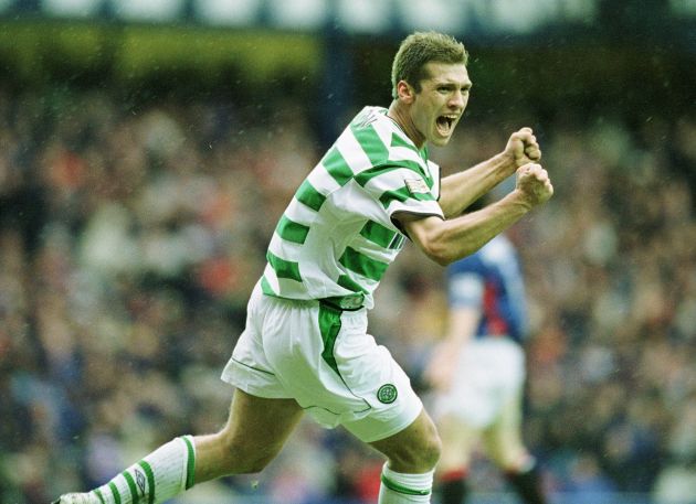 10 Mar 2002: Stilian Petrov of Celtic celebrates scoring the opening goal during the Scottish Premier League match between Glasgow Rangers and Celtic played at Ibrox in Glasgow, Scotland. Mandatory Credit: Alex Livesey/Getty Images