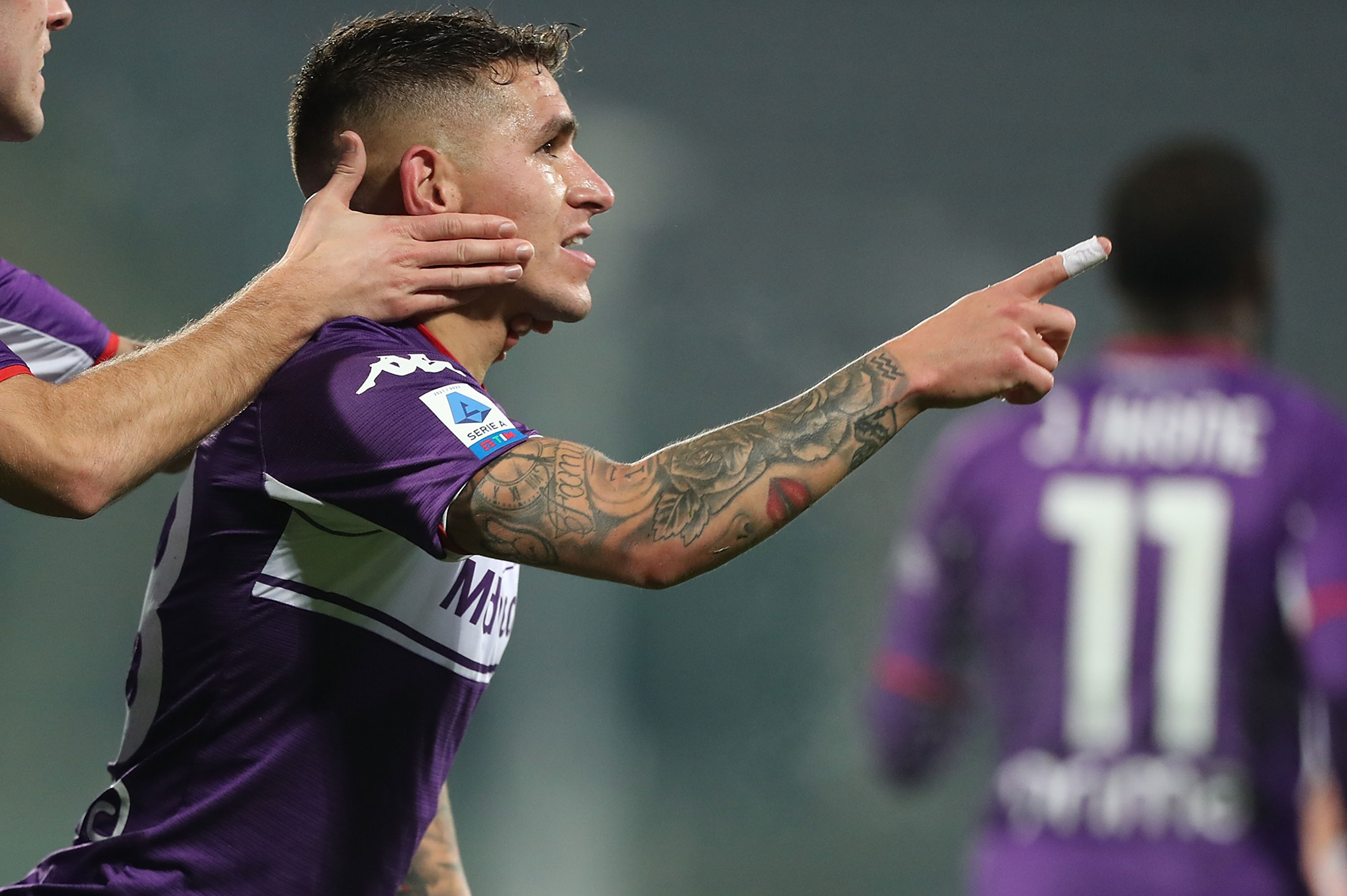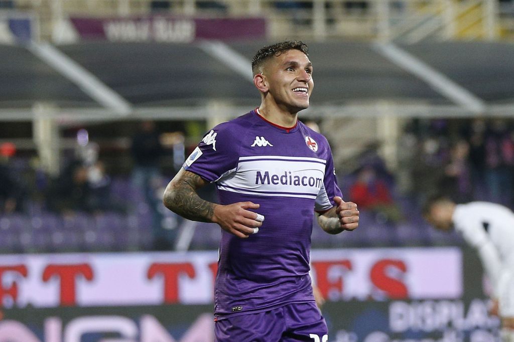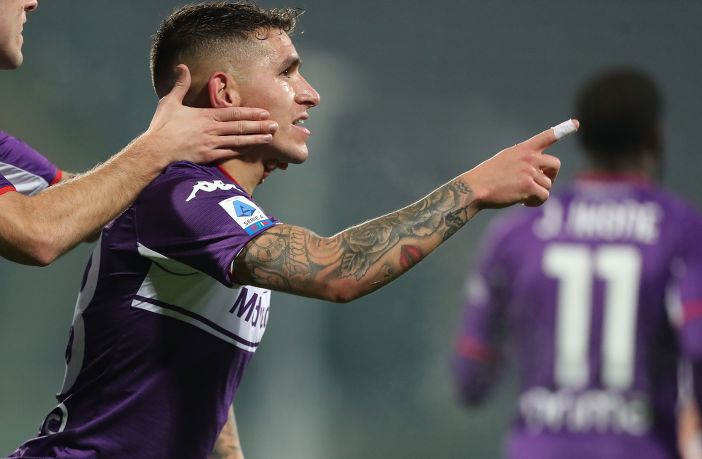 Lucas Torreira of ACF Fiorentina celebrates after scoring his second goal during the Serie A match between ACF Fiorentina and Genoa CFC at Stadio Artemio Franchi on January 17, 2022 in Florence, Italy. (Photo by Gabriele Maltinti/Getty Images)