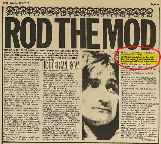 Rod Stewart is a right wing has been and was and is a racist is what the accusation is?