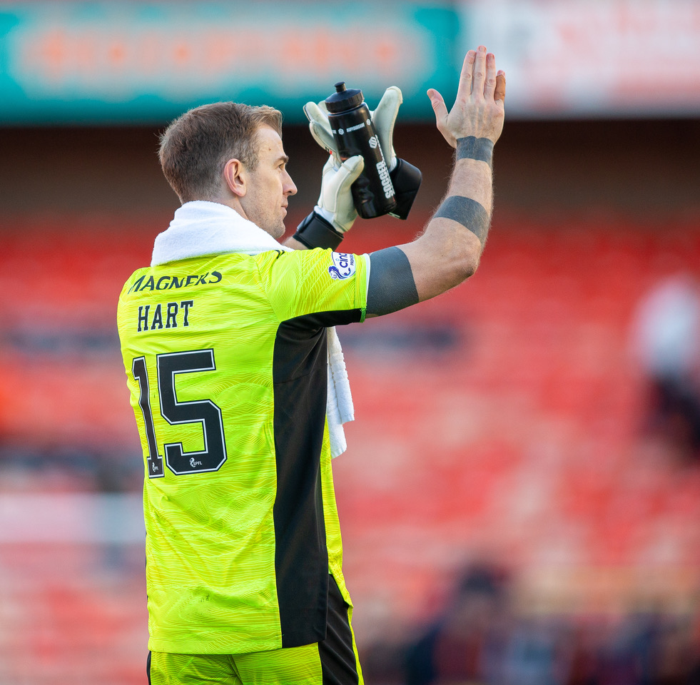 5th December 2021; Tannadice Park, Dundee, Scotland: Scottish Premier League football, Dundee United versus Celtic: Joe Hart of Celtic applauds the supporters