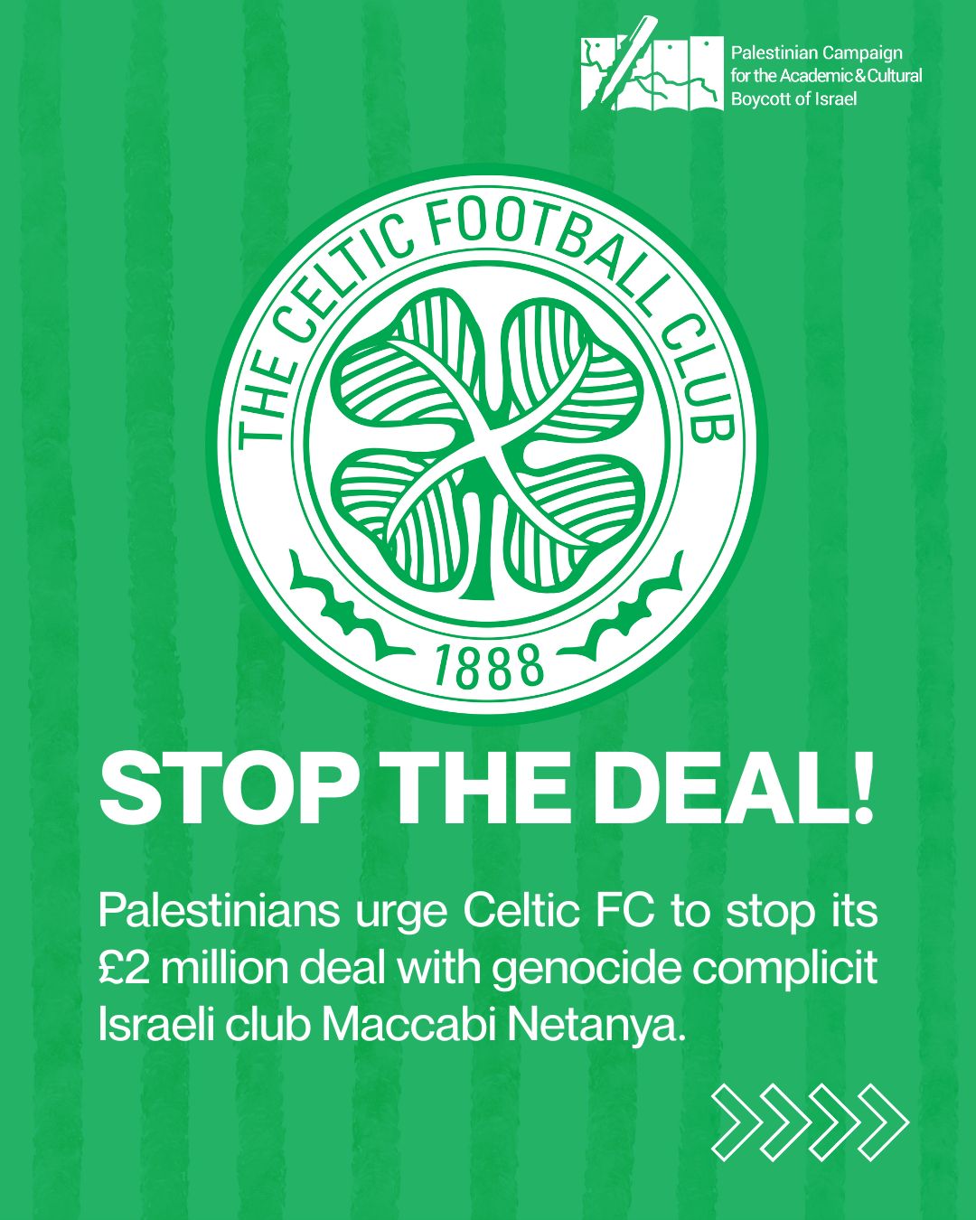 As Palestinians, we are deeply troubled by reports that @CelticFC is close to completing a £2M deal for a player from Israeli club Maccabi Netanya. Celtic must stop this deal.