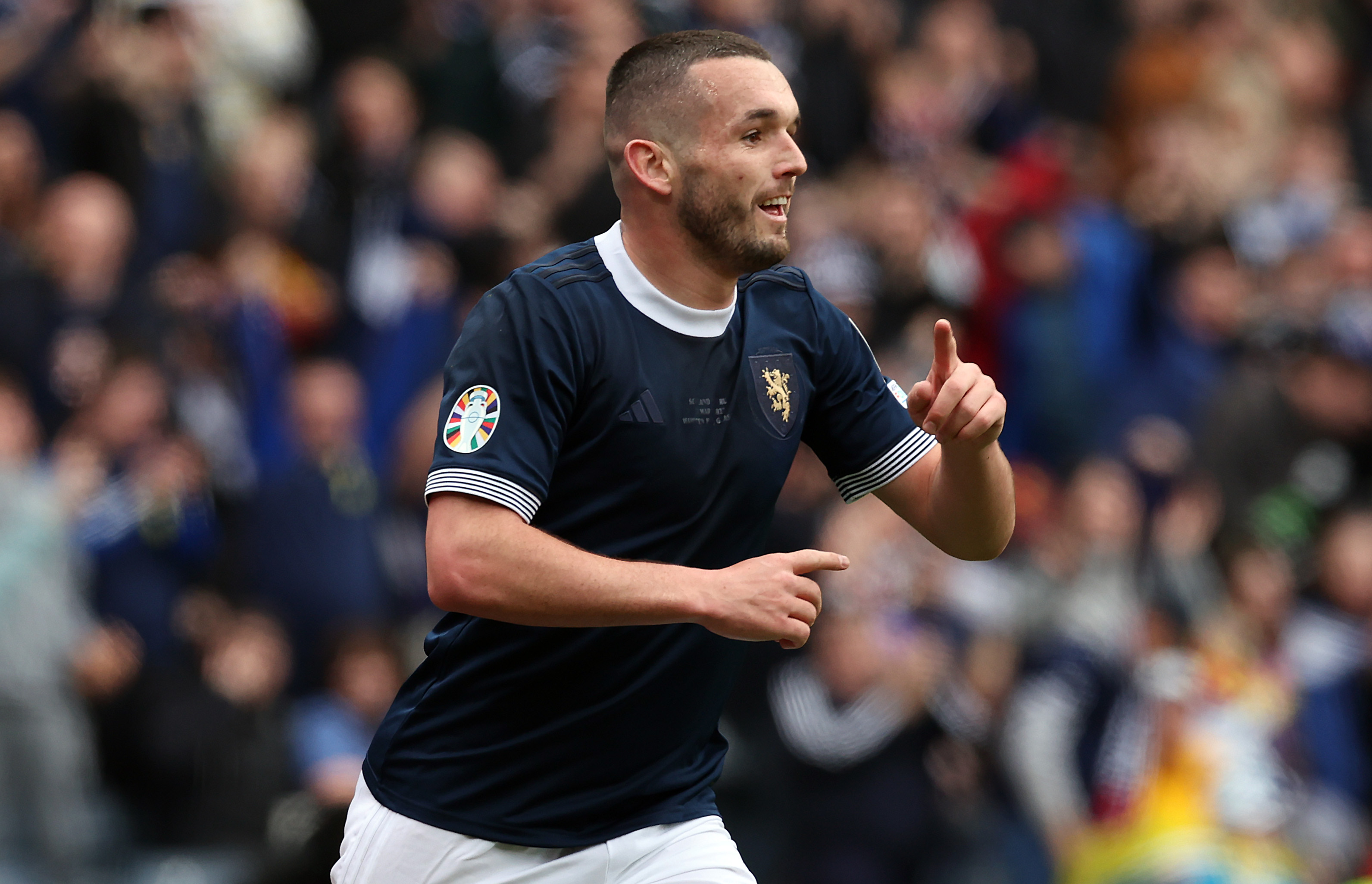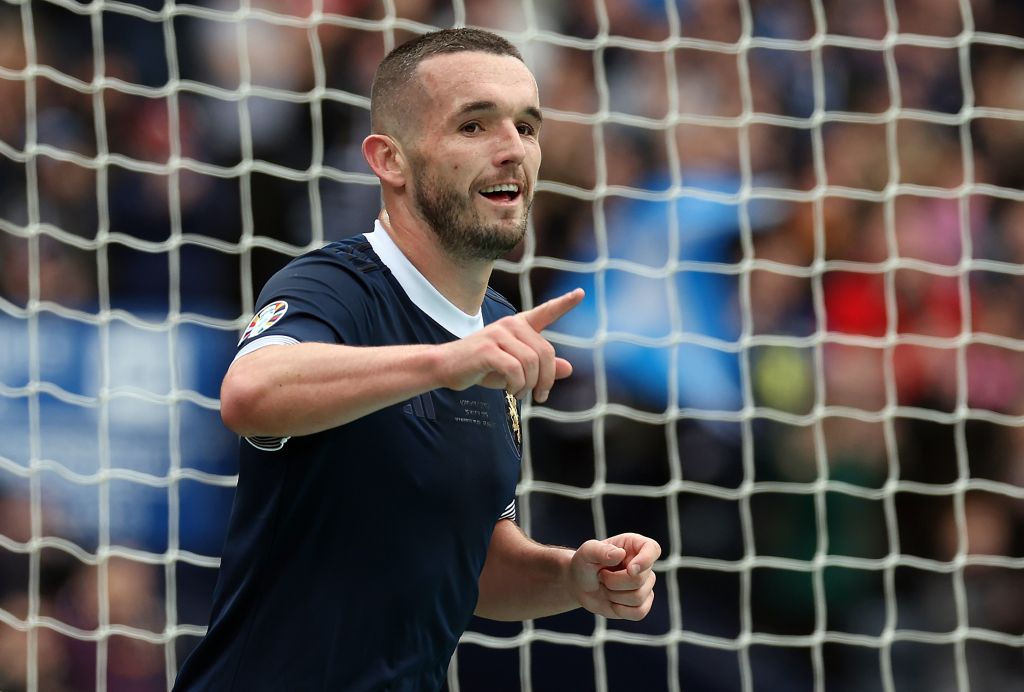 John McGinn celebrates after scoring the opening goal during the UEFA EURO 2024 qualifying round group A match between Scotland and Cyprus at Hampden Park on March 25, 2023 (Photo by Ian MacNicol/Getty Images)