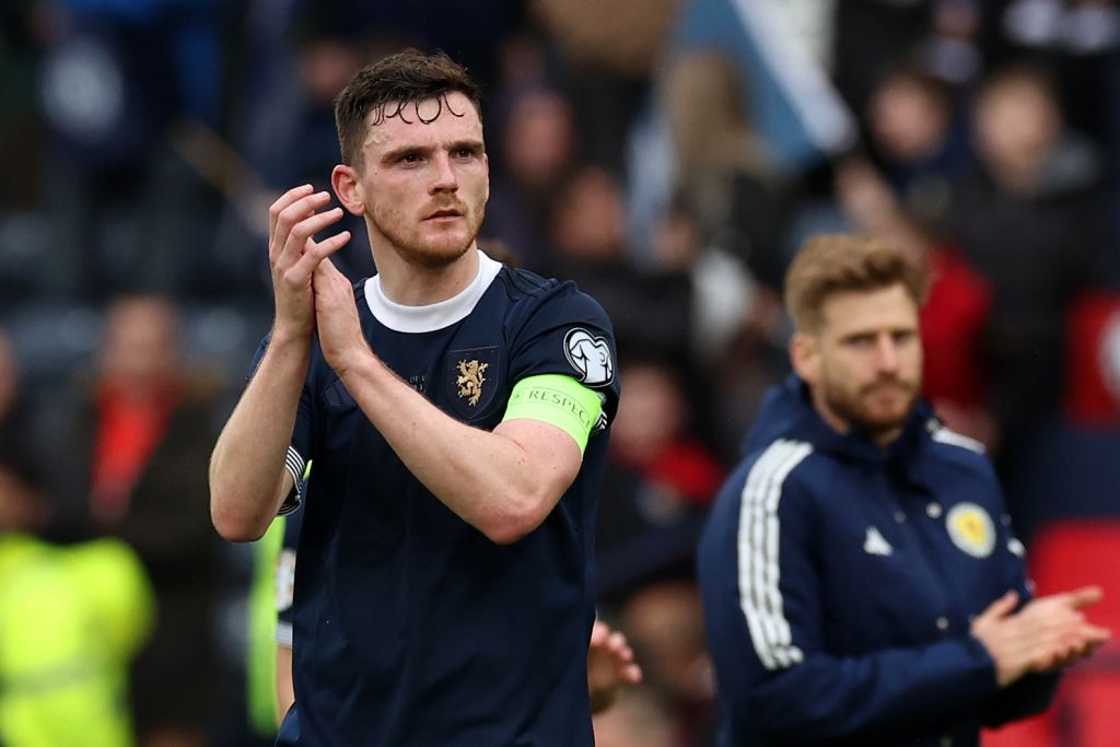 Andy Robertson applauds the fans following the UEFA EURO 2024 Qualifying Round Group A match between Scotland and Cyprus at Hampden Park on March 25, 2023 (Photo by Ian MacNicol/Getty Images)