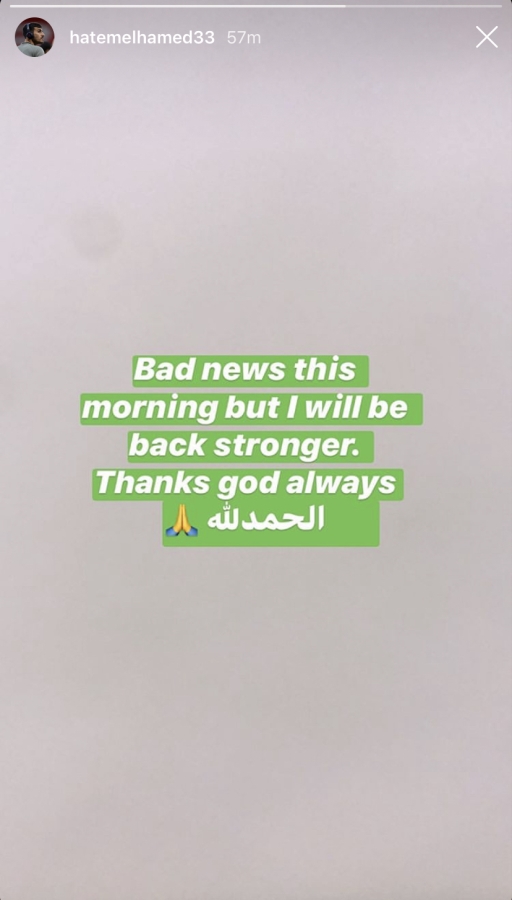 The message Elhamed posted in Instagram stated: “Bad news this morning but I will be back stronger. Thank god always.”