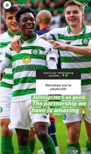 When asked who the best player he’s played with, Frimpong singled out Celtic’s James Forrest.