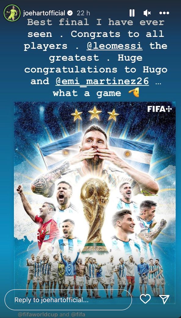Joe Hart has posted on his Instagram story reacting to Argentina’s historic World Cup Final win over France.
