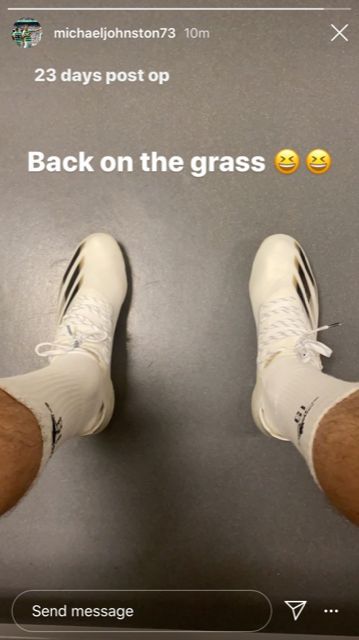 MIKEY JOHNSTON has posted an update as he returns to grass training after undergoing an operation last month. The player injured his knee at McDiarmid Park in January and is now taking the steps to return to playing.