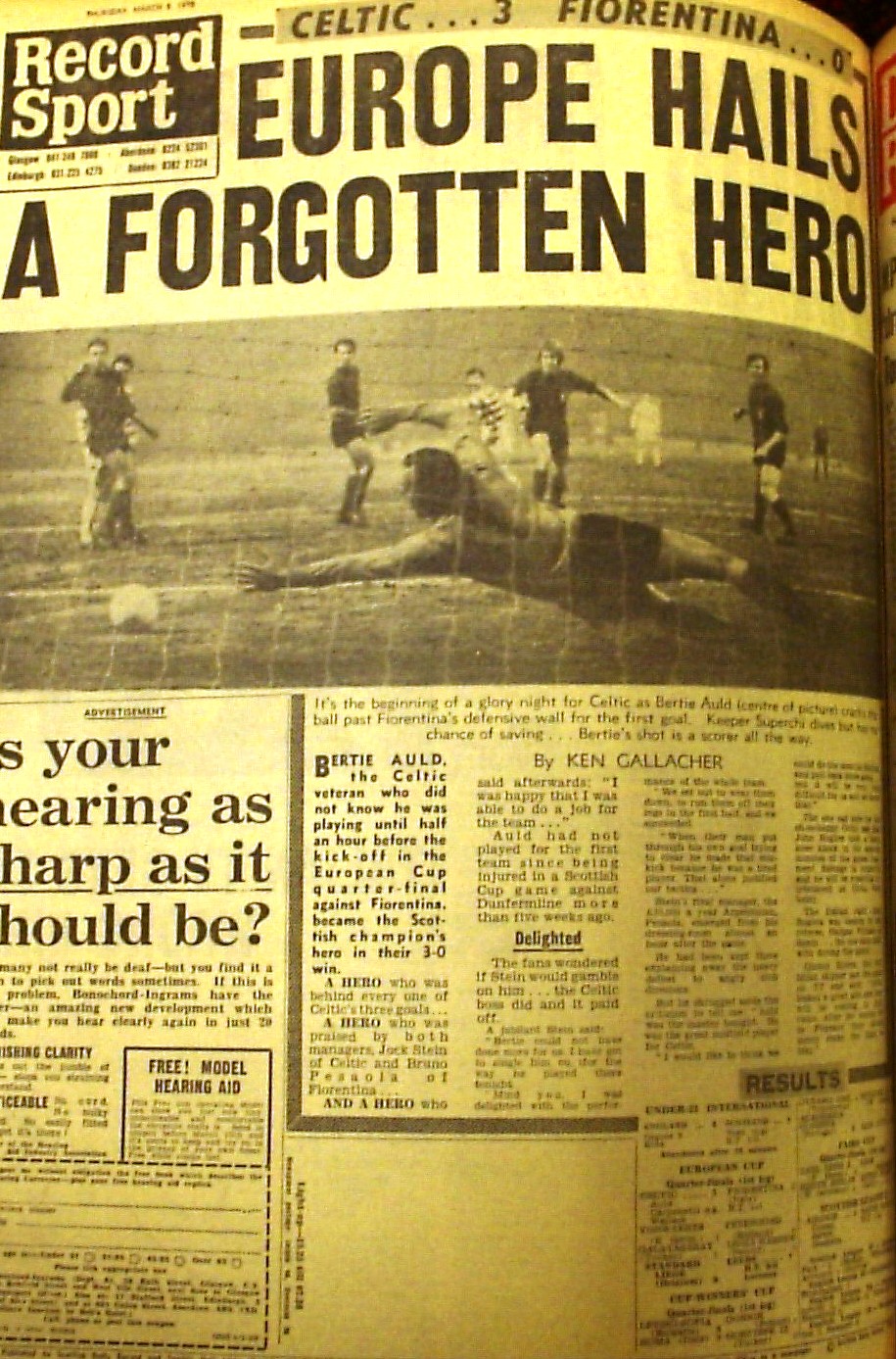 In the first leg of the 1970 European Cup quarter final, Auld was the hero as he set Celtic on their way to an amazing 3-0 victory. The fact that Bertie only found out he was playing half an hour before kick off, simply adds to the mystique of the story.