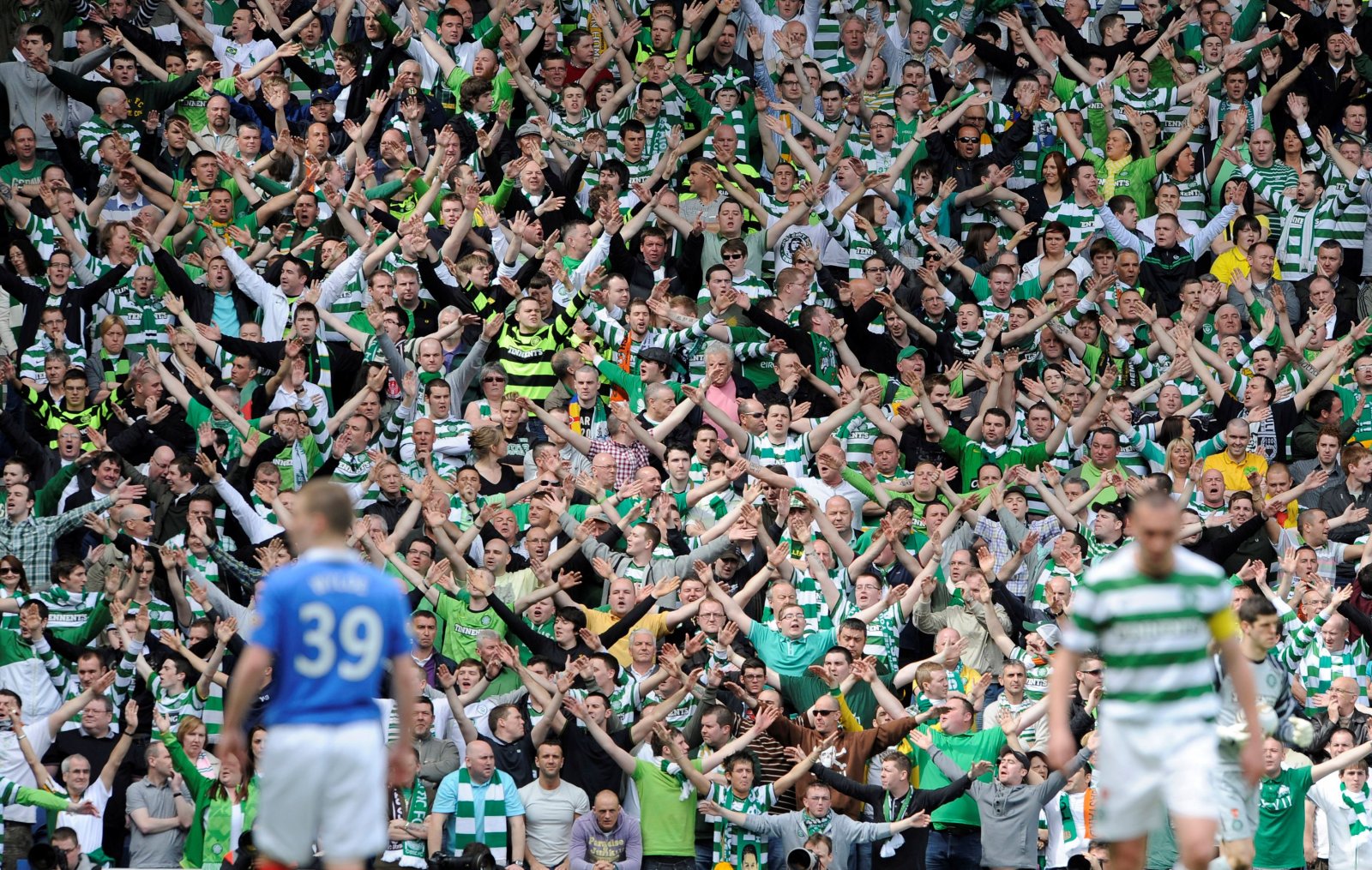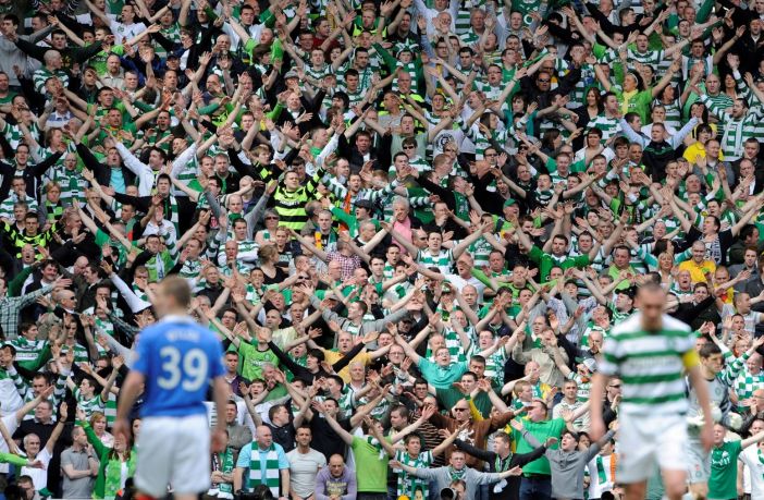 Scott Brown against a backdrop of Celtic fans doing the Broony. Celtic 3-0 Rangers 20 February 2011
