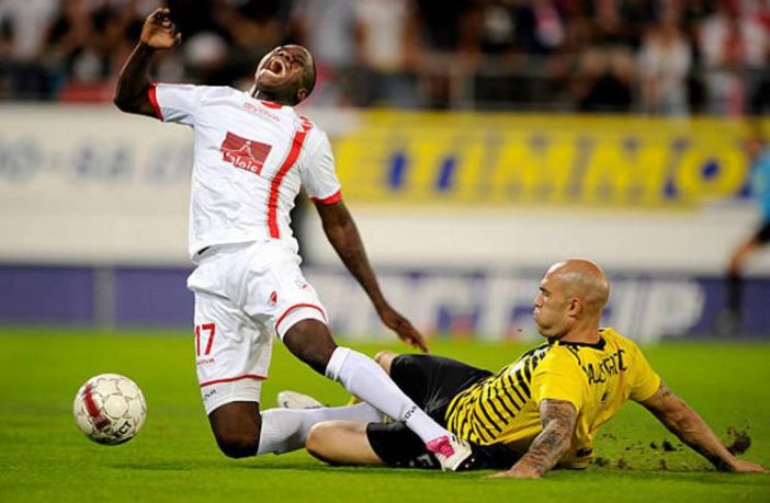 The photo of choice depicts Dan Majstorovic making an ill timed challenge in the first minute of the match. The tackle resulted in him being sent off and Sion were awarded a penalty, which was converted by Pascal Feindouno. It was the beginning of a dreadful night.