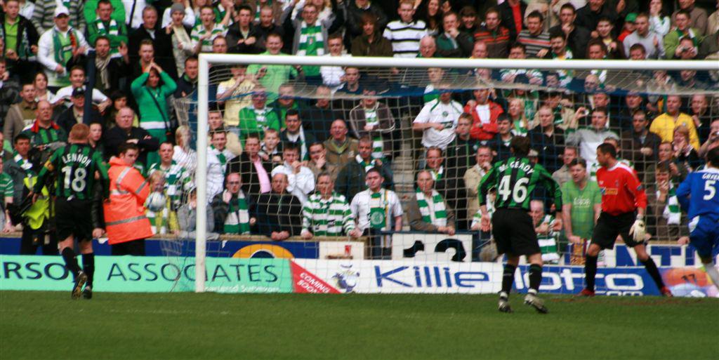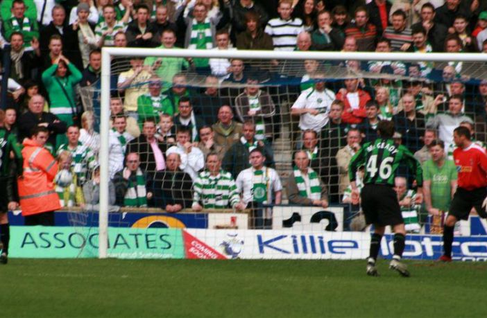 Today’s photo of the day takes you back to 2007 when Celtic clinched the league title at Rugby Park. The scene captured is a fabulous moment as Nakamura’s championship winning free kick nestles in the back of the net, but the Celtic players and supporters haven’t yet noticed.