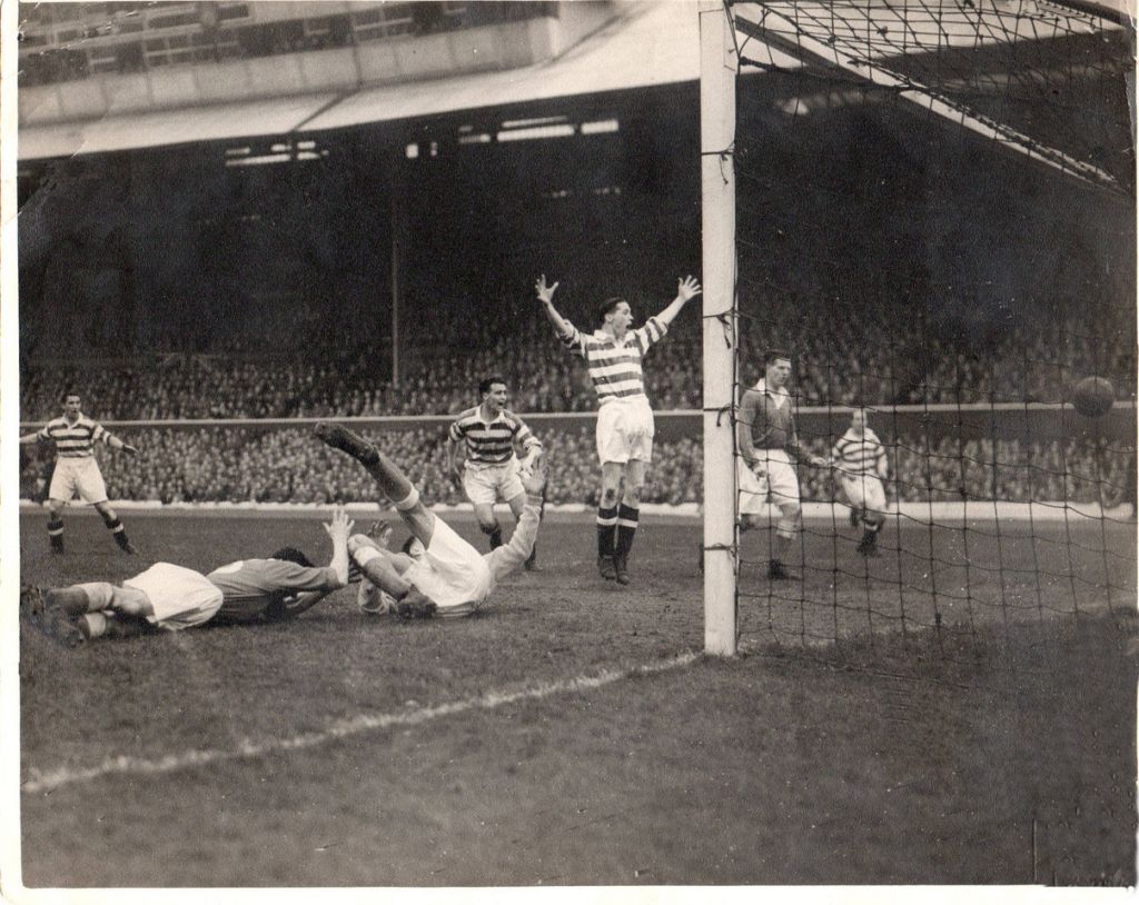 Neil Mochan’s strike flies past Hibernian keeper Tommy Younger into the top corner to give underdogs Celtic the lead just before the half-hour. Peter has a bird’s eye view of this from his place in the Hampden terracing at the far corner of the ground and rates it the best goal he ever saw.