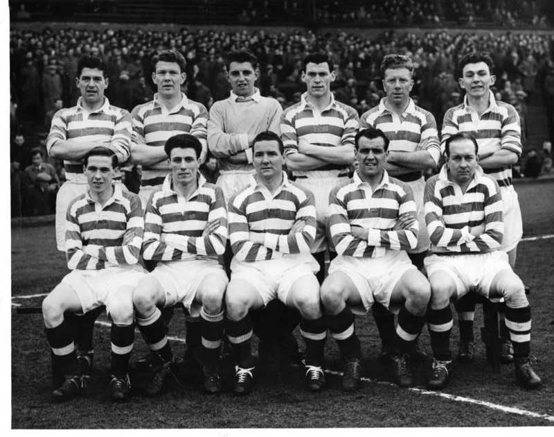 Front row; Vincent Ryan, Willie Fernie, Bobby Collins, Bertie Peacock, Billy McPhail, Charlie Tully and Neil Mochan.