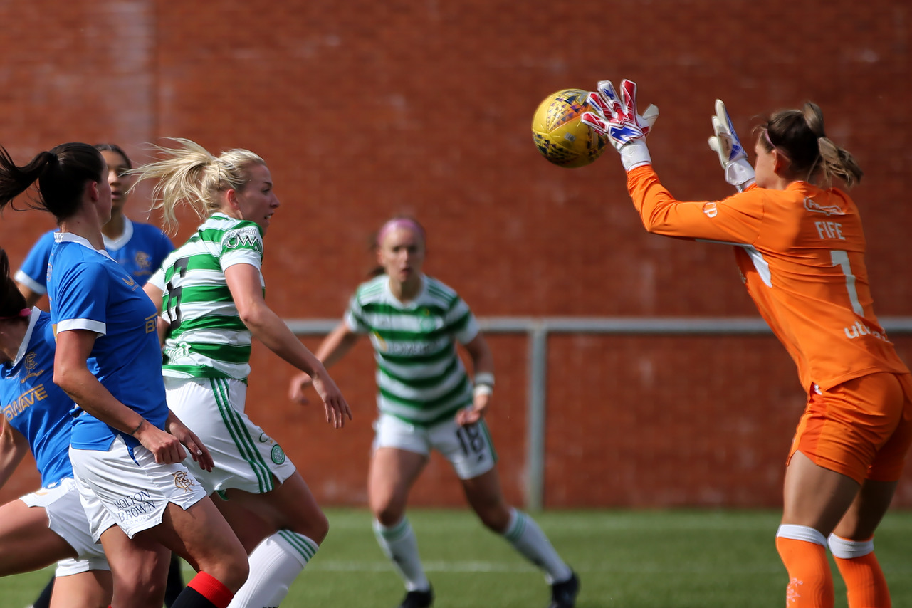 And within a minute Celtic should have had a second. Shen, after fashioning space in the area laid the ball off well to Charlie Wellings, who having let the ball come across her body looked to have the perfect chance to score. The striker let rip with a powerful strike only to see Fyfe pull of a miraculous save to deny Wellings her 40th goal of the season.