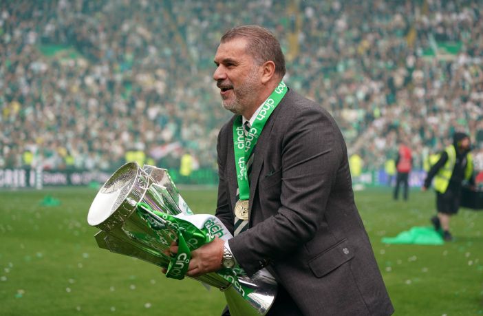 Ange Postecoglou, Manager of Celtic lifts the Scottish Cup trophy after the team’s victory during the Scottish Cup Final between Celtic and Inverness Caledonian Thistle at Hampden Park on June 03, 2023 (Photo by Mark Runnacles/Getty Images)
