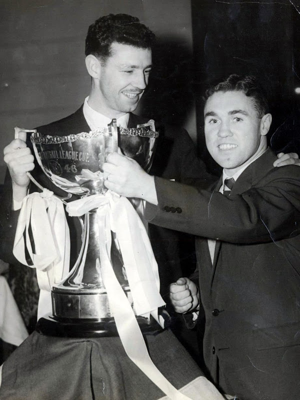 Billy McPhail and Bobby Collins with the League Cup after skelping Rangers 7-1