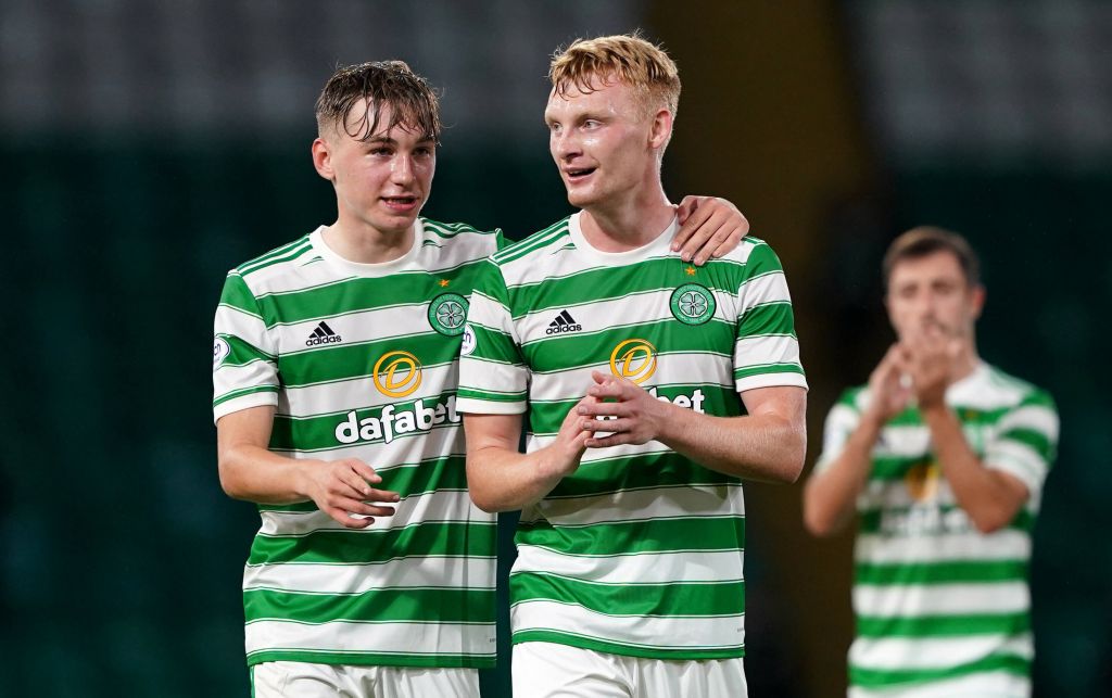 Celtic’s Adam Montgomery and Liam Scales. Photo Andrew Milligan