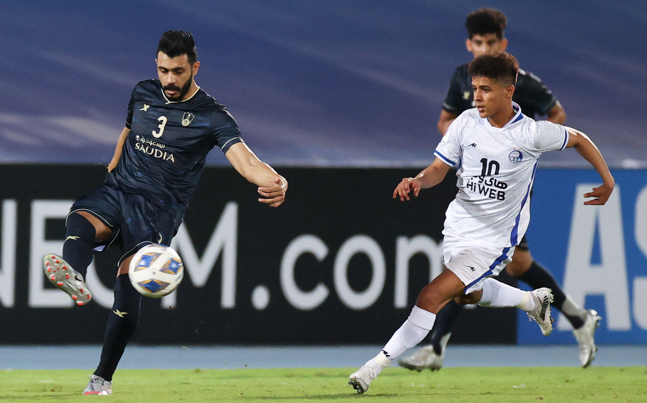 Ahli’s defender Mohammed al-Fatil (L) is marked by Esteghlal’s forward Mehdi Ghayedi during the AFC Champions League group C match between Saudi’s Al-Ahli and Iran’s Esteghlal on April 27, 2021, at the King Abdullah sport city stadium in the Saudi city of Jeddah. (Photo by -/AFP via Getty Images)