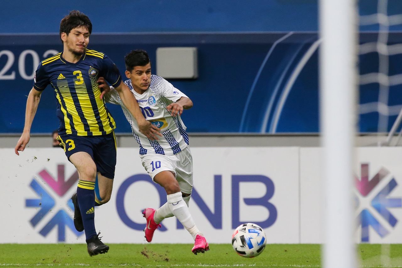 Esteghlal’s forward Mehdi Ghayedi (R) is marked by Pakhtakor’s defender Khojiakbar Alijonov during the AFC Champions League Round of 16 match between Uzbekistan’s Pakhtakor and Iran’s Esteghlal on September 26, 2020, at the Al-Janoub Stadium in the Qatari city of Al Wakrah. (Photo by MUSTAFA ABUMUNES/AFP via Getty Images)