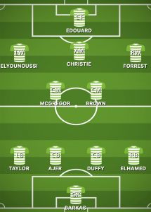 The manager may be unsure whether to go with a 4-2-3-1 or his preferred 3-5-2. It is likely given the unknown nature of a European trip away, especially in a one-legged affair, the manager will likely be more cautious and play with four at the back. With that in mind, Shane Duffy will partner Kris Ajer with Christopher Jullien nursing a minor back injury. At left back, Greg Taylor will likely start with either Hatem Abd Elhamed or Jeremie Frimpong. The Israeli will likely get the nod as Lennon may prefer his defensive attributes as opposed to Frimpong’s blistering pace.