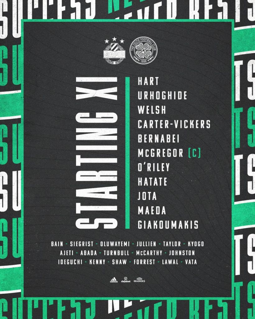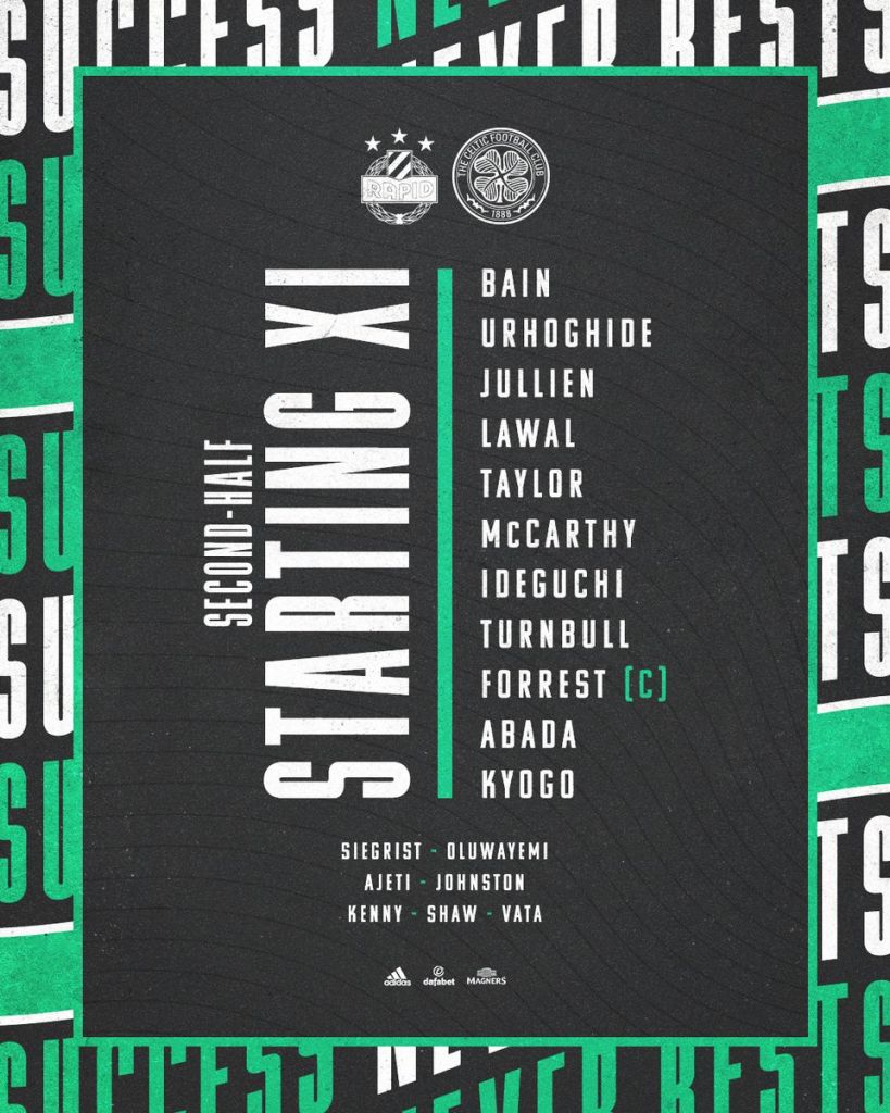 Todays starting eleven saw the return of a few more first team stars who were missing on Wednesday including Giakoumakis, O’Riley, Maeda and Kyogo. We also got a glimpse of Jota and Cameron Carter-Vickers, who both recently put pen to paper on permanent contracts to stay at Celtic Park for the foreseeable future.