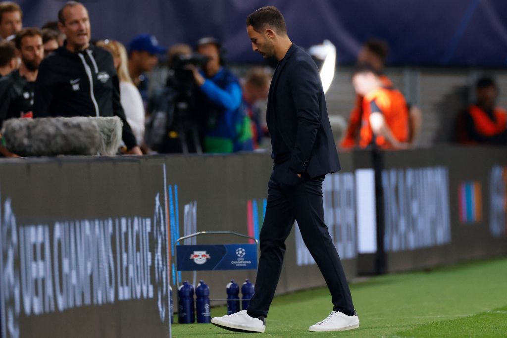 Leipzig’s Italian-German head coach Domenico Tedesco leaves after the UEFA Champions League Group F football match RB Leipzig v FC Shakhtar Donetsk in Leipzig, on September 6, 2022. (Photo by ODD ANDERSEN/AFP via Getty Images)
