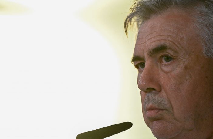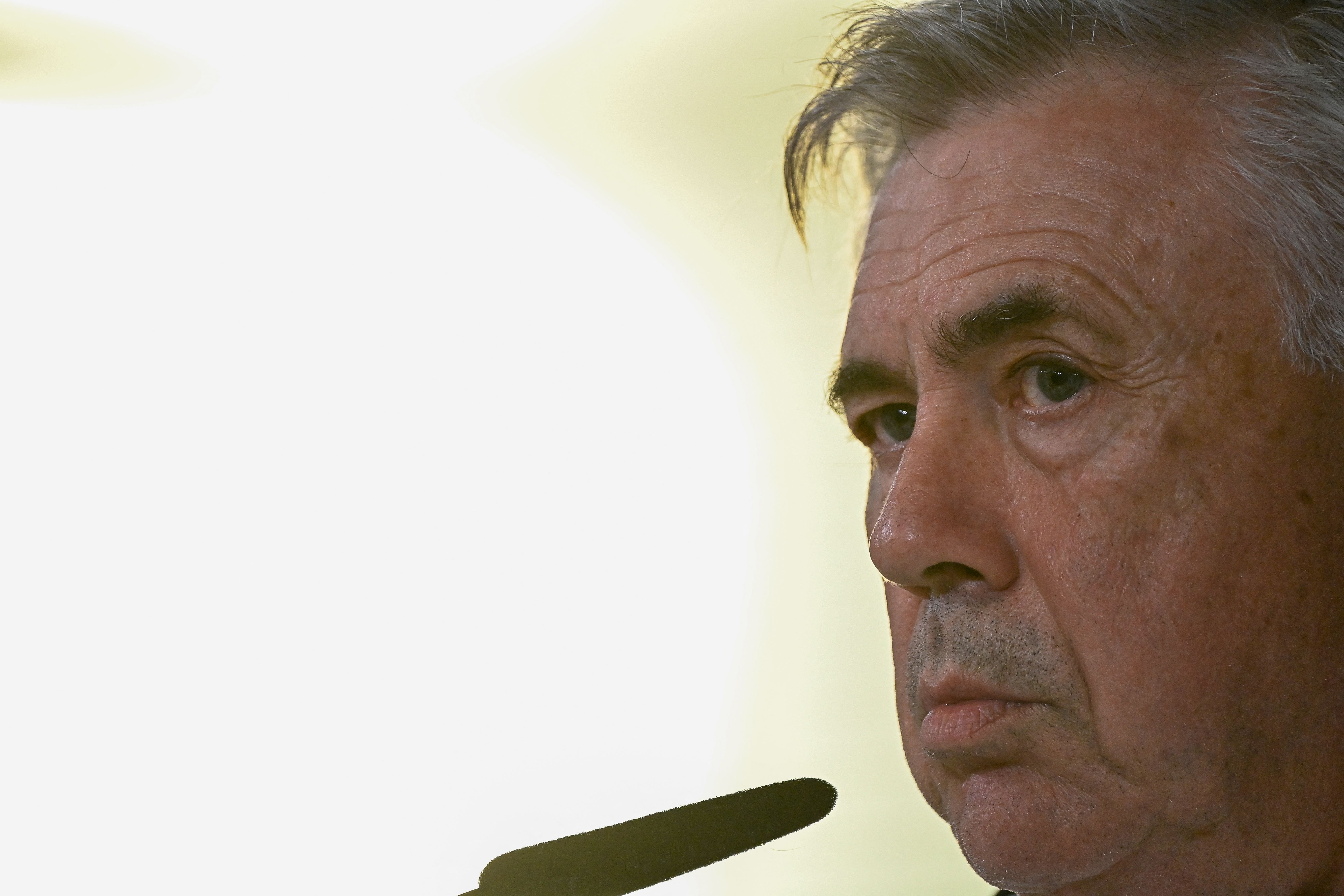 Real Madrid’s Italian coach Carlo Ancelotti addresses a press conference at the Ciudad Real Madrid training complex in Valdebebas, outskirts of Madrid, on November 1, 2022, on the eve of their UEFA Champions League football match against Celtic FC. (Photo by PIERRE-PHILIPPE MARCOU/AFP via Getty Images)